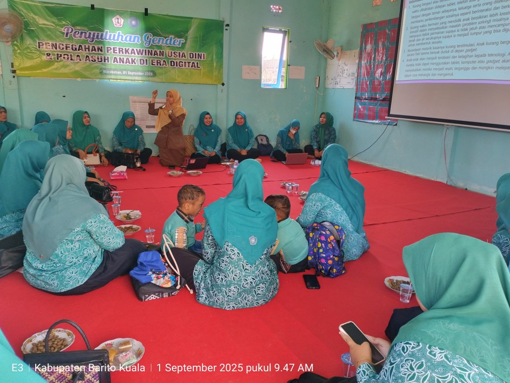DesBag Mehabarkan,1 September 2025, TP PKK Kecamatan Marabahan, TP PKK Desa Se Kecamatan gelar kegiatan Arisan rutin setiap bulan yang mana untuk bulan september 2025 bertempat di Desa Bagus, selain kegiatan arisan juga kegiatan di isi dengan mengadirkan narasumber dari Dinas Pengendalian Penduduk Keluarga Berncana perlindungan perempuan dan anak kabupaten Barito Kuala dengan materi penyuluhan Gender dalam mencegah perkawinan usia dini dan pola asuh anak di era digital yang di sampaikan oleh Ningrum Bahalatifah, S.Psi dari Pisikolog PUSPAGA Ije Jela Barito Kuala, dari penyluhan tersebut banyak ilmu yang di dapat oleh kader PKK se kecamatan Marabahan dalam upaya mencegah perkawinan usia dini yang mana kabupaten Barito Kuala masih ada perkawinan anak masih belum mecapai batas di perbolehkan untuk usia menikah sesuai peraturan perundang-undagan yang berlaku yaitu umur 19 tahun untuk laki laki dan permpuan serta menikah usia ideal dari BKKBN untuk laki-laki 25 tahun untuk perempuan 21 tahun, serta di harapkan kepada kader PKK dapat aktif memberikan informasi yang di dapat kepada warga di desa masing-masing untuk menciptakan Barito Kuala bebas dari pernikahan usia dini, kemudian kegaitan di akhiri dengan pemberian informasi terkait program-program PKK dan administrasi PKK (EM)