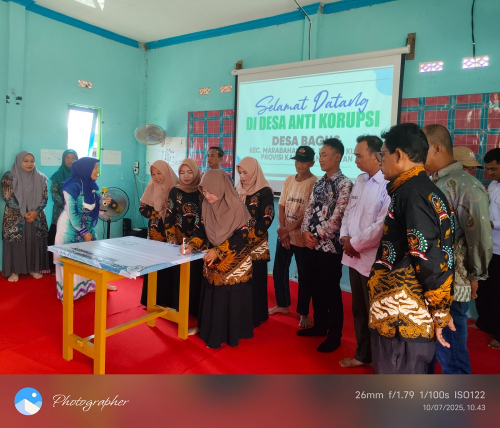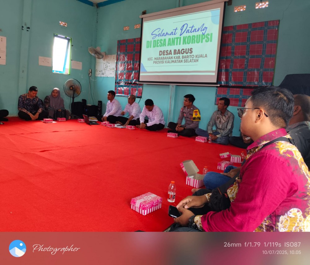 DesBag Mahabarkan, Kamis 10 Juli 2025 Pemerintah Desa bagus mengadakan kegiatan aksi Desa Deklarasi Pencegahan tindak pidana Korupsi di Desa Bagus kegiatan yang di hadiri oleh Kepala Dinas PMD Kabupaten Barito Kuala, inspektur Inspektorat Kabupaten Barito Kuala, perwakilan Dinas Kominfo Kabupaten Barito Kuala, Camat marabahan, Bhabinkantibmas Desa bagus, Bhabinsa Desa Bagus, Pendamping desa, pendamping lokal Desa, kepala Desa bagus beserta perangkat desa, Ketua TP PKK Desa Bagus dan anggota, Ketua BPD beserta Anggota kader Desa, LPM dan tokoh Masyarakat . acara dibuka oleh kepala Desa bagus dengan memaparkan maksud dan tujuan kegiatan ini dilaksanakan. selanjutnya sambutan dari kepala Dinas PMD Kabupaten barito Kuala , pujian yang diberikan kepada desa bagus yang telah berjuang untuk memenuhi kreteria penilaian Desa Anti korupsi yang dilaksnakan oleh KPK RI serta satu satunya desa yang mengikuti penilaian desa Anti korupsi ungkap yang di panggil Bapak kadis Azis, selanjutnya sambutan dari inspektur Inspektorat Kabupaten Barito Kuala, beliau juga memberikan pijuan kepada pemerintahan desa bagus mampu mewakili kabupaten Barito kuala pada penilaian Desa Anti Korupsi dari inspektorat siap membantu berkas berkas yang di perlukan oleh desa, sambutan di lanjutkan oleh Camat Marabahan kembali memberikan pujuan kepada Pemerintah Desa bagus dan mengucapkan selamat terpilihnnya Desa Bagus Sebagai contoh kepada Desa Lain dengan harapan akan di ikuti oleh Desa Lain disekitar kecamatan Marabahan dan kecamatan lainya. kemudian acara di alnjukan pemutaran Jinggle Anti korupsi Desa Bagus dan penayangan progres perkembangan hasil Capaian Penilaian Desa hingga per tanggal 10 Juli 2025. selanjutnya acara penenadatanganan Deklarasi bersama dalam mendukung pencegahan tindak pidana Korupsi oleh semua yang behadir pada kegiatan tersebut serta dilanjutkan foto bersama. Pemerintah Desa bagus tidak akan bisa Maju menjadi Terpilihnya Desa Anti korupsi Tanpa semua pihak yang telah membantu terpenuhinya penilian yang di harapkan oleh pemerintah Daerah Kabupaten Barito Kuala semoga hasil terbaik di peroleh Desa Bagus (EM)