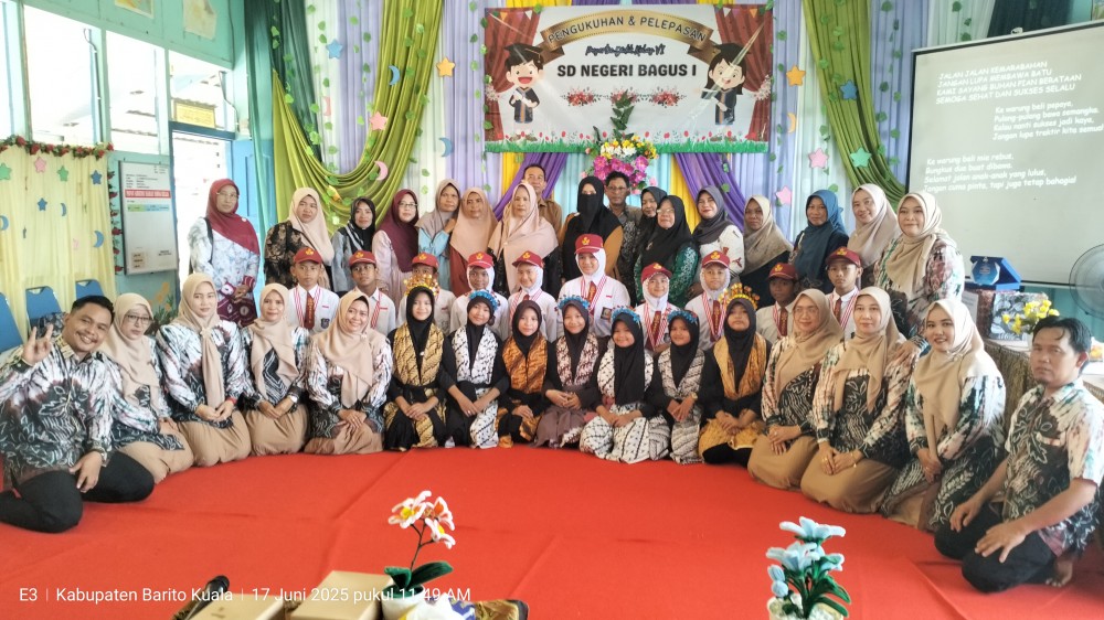 DesBag Mehabarkan , 17 Juni 2025, Kepala Desa Hadiri Pengukuhan dan Pelepasan murid Kelas 6 SDN Bagus 1 Tahun Ajaran 2024/2025 merupakan agenda tahunan di setiap sekolah sebelum kegaiatan dimulai buka oleh penampilan pembacaan sholawat dan syair maulid Habsy dari SDN Bagus 1 acara yang di hadiri oleh kepala Desa Bagus, Ketua Komite Sekolah, Kepala Sekolah serta dewan guru dan orang tua wali murid kelas 6 acara dimulai dengan menyanyikan bersama lagu indonesia raya kemudian dilanjutkan prosesi pengukuhan murid kelas 6 yang mana semuanya 100% lulus dan dapat melanjutkan pendidikan Sekolah menengah pertama, sambutan mulai dari siswa yang lulus dan siswa yang ditinggalakn serta perwakilan orang tua wali murid yang lulus kemudian dilanjukan oleh kepala sekolah dengan memberikan pesan agar selelu menjaga nama baik sekolah sambutan selanjutnya oleh ketua komite sekolah dan terakhir oleh kepala Desa Bagus dalam sambutan memberikan selamat kepada siswa yang lulus menyelesaikan sekolah dasar serta pemerintah desa kembali meanggarkan hadiah untuk siswa berprestasi Tahun Anggran 2025 kegiatan di tutup pembacaan peringkat nilai tertinggi kelulusan dan hiburan (EM)
