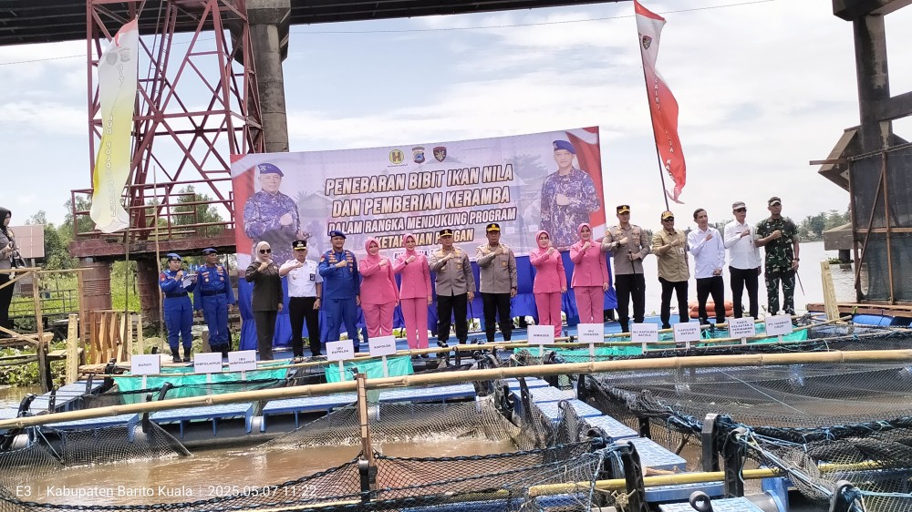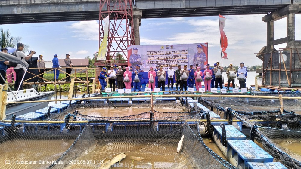 DesBag Mehabarkan, 07 Mei 2025 kunjungan KAPOLDA Kalimatan Selatan, Perwakilan Hasnur, KaPOLDA Airud Kalsel, Wakil Bupati Barito Kuala,kepala dinas Perikanan Kab. Barito Kuala , kepala Desa se kecamatan Marabahan, dari kades dan Masyarakat Desa cerbon dan Batik kegiatan yang di gelar dibawah Dekat Jemabtan Rumpiang Desa Bagus dengan kegiatan Bakti Sosial pemberian bibit ikan nila dan keramba serta bantuan untuk anak stunting kepada warga masyarakat Desa Bagus kec. Marabahan Kab. Barito Kuala Acara dimulai dari Sambutan Wakil Bupati Barito Kuala yang dilanjutkan sambutan Kapolda Provinsi kalimantan Selatan dengan tujuan kegiatan intuk mendukung ketahanan pangan Nasional yang terdapat dalam Asta cita Presiden RI, selanjunya kegiatan penyerahan Bantuan bibit Ikan nila dan Keramba yang langsung diserahkan oleh Kapolda seljutnya penyerahan bantuan paket untuk penanganan stunting kepada warga di 3 kecamatan marabahan, bakumpai dan cerbon melaui Bhayangkari Peduli yang langsung di serahkan ibu bhayangkari Kapolda Kalimantan selatan berupa Makanan untuk di masak orangtua serta uang untuk memenuhi kebutuhan anak yang mengalami stunting selanjutnya pemberian Paket sembako kepada warga Desa Bagus sebanyak 100 paket di bagikan dan untuk warga di kecamatan Bakumpai dan Kecamatan Cerbon, kegiatan selanjutnya secara simbolis penebaran bibit ikan ke keramba yang akan dokelola warga Desa Bagus. kegiatan ini sangat bermamfaat untuk warga Desa Bagus dan dapat meningkatkan perekonomian warga serta dengan bantuan paket warga sangat terbantu semoga kerjasama kegiatan ini terus berlanjut untuk meningkatkan kesehatan dan kesejahtreraan khusunya warga Desa Bagus (EM)