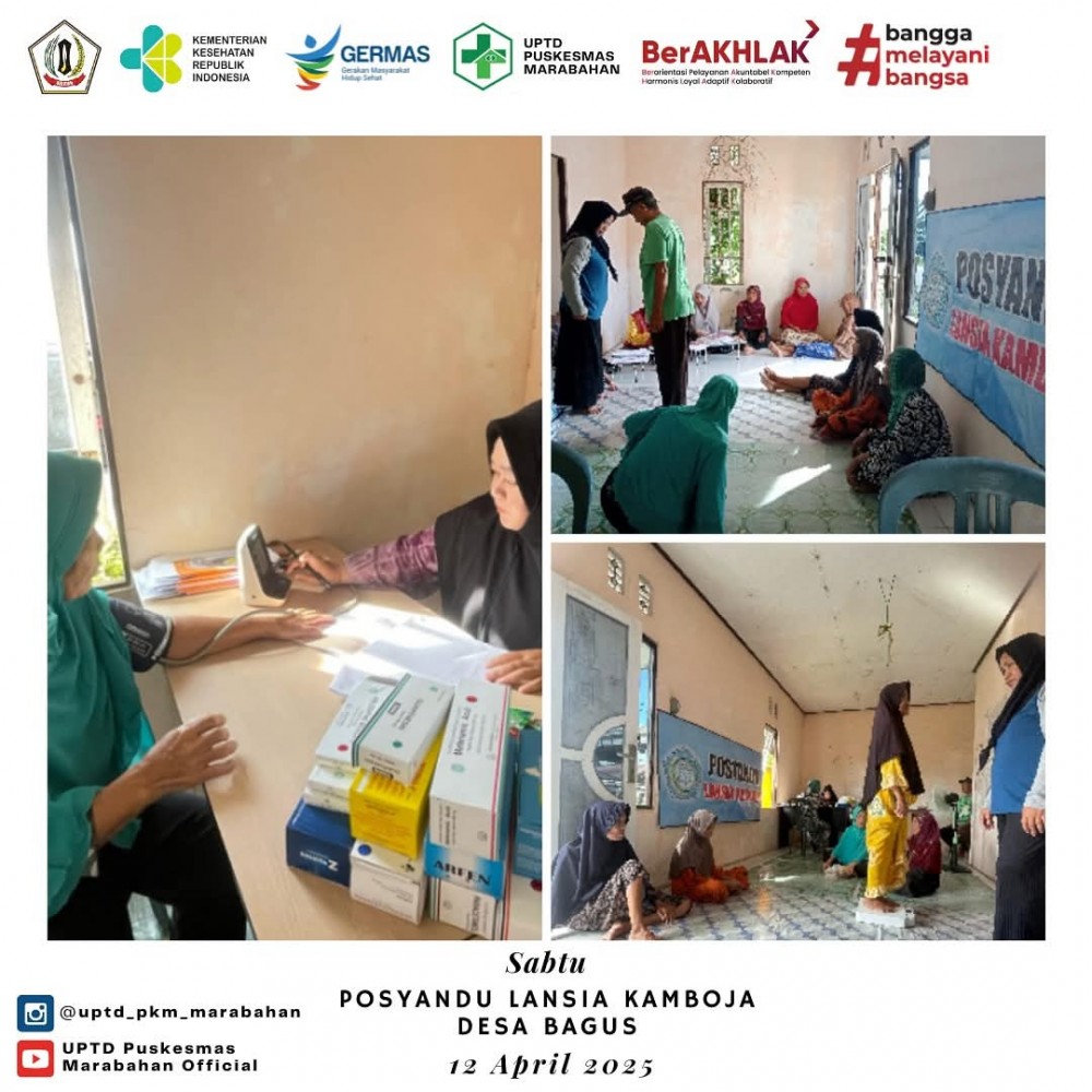 DesBag Mebabarkan. Sabtu 12 April 2025 Posyandu Lansia Kamboja rutin melakukan pemerikasaan kesehatan untuk para lansia diDesa Bagus oleh Kader Posyandu Lansia kamboja . pemantauan kesehatan oleh kader kepada lansia sangat diperlukan warga lansia untuk memastikan kesehatan lasia terjaga dengan baik, kegiatan yang di danai oleh pemerintah Desa Bagus melalui APBDes TA 2025 dari DD, bantuan yang diberikan insentif Kader dan Pemberian makanan Tambahan kepada pengunjung posyandu, apabila di temukan pada saat pemerikasaan kesehatan diatas normal maka akan di tangani secara langsung oleh petugas Puskesmas melalui Puskesmas Pembantu oleh Bidan Desa dengan memberikan Obat secara garatis.(EM)