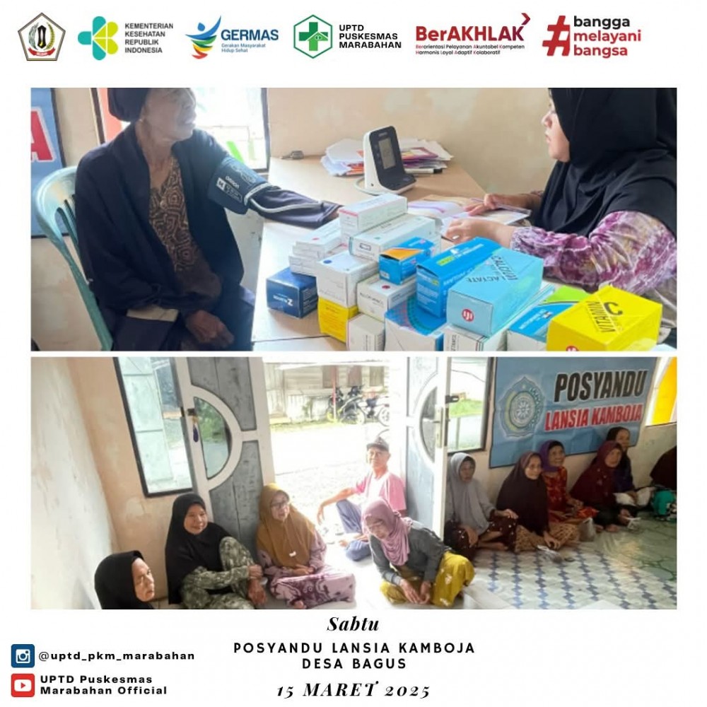 Desa Bagus memiliki 2 posyandu lansia yaitu posyandu lansia mawar terletak di RT 004 dan posyandu kamboja terletak di RT006 dengan jumlah kader 5 orang setiap posyandu dengan anggaran berasal dari Dana Desa untuk insentif Kader, Pemberian Makanan Tambahan (PMT) .pada tanggal 15 Februari 2025 telah dilaksanakan Posyandu Lansia Kamboja di RT006 dengan dihadiri oleh para lansia RT006 dan RT 005 dengan pelaksaanaan oleh kader lansia yang sebelum hari pelaksanaan telah memberi kabar kepada para lansia , tempat pelaksaaan di Poskesdes RT006 selain para kader lansia pelaksanaan dibantu oleh Kader KPM dan petugas Kesehatan dari Puskesmas atau Petugas dari Puskesmas Pembantu Desa untuk memberikan penanganan cepat kepada lansia berupa pemberian obat-obatan. untuk memberikan semangat kehadiran para lansia juga di berikan hadiah dorprize berupa sembako sehingga dapat sedikit membantu kebutuhan para lansia di Desa Bagus,