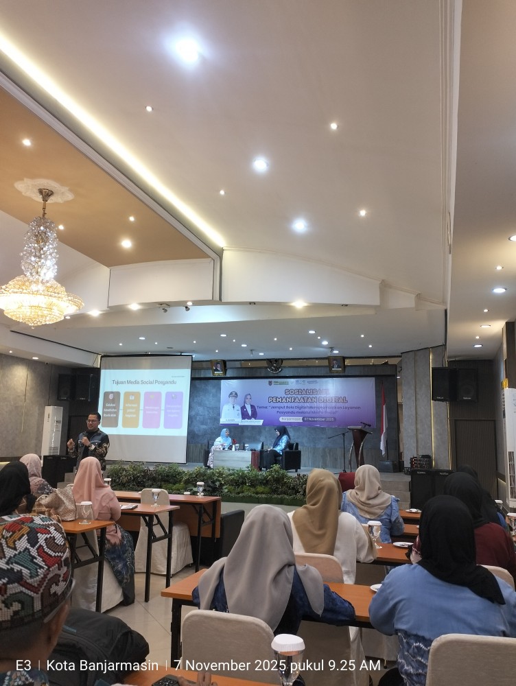 Desbag Mehabarkan, Jum'at 07 November 2025, Dinas Komunikasi dan informatika Provinsi kalimantan selatan merupakan salah satu OPD yang tergabung dalam posyandu Wasaka sebagai Koordinator seketariatan yang memiliki tugas menjalankan 6 SPM Posyandu pada pelayanan Komonikasi dan informasi yaitu mengelola informasi dan komunikasi publik. dalam rangka meningkatkan jangkuaan informasi dan partisifasi masyarakat terhadap program-program kesehatan khususnya yang dilaksanakan oleh posyandu, maka Dinas Komunikasi dan inforatika provinsi kalimantan selatan melaksanakan sosialisasi pemamfaatan media Digital. kegiatan ini bertujuan untuk membekali peserta khisisnya para kader dan Kelompok informasi Masyarakat, dengan kemampuan praktis dalam memamfaatkan media sosail sebagai alat promosi yang efektif dan efesien sehingga layanan dapat menjempu bola ketengah masyarakat secara digital.yang dilaksnakan di hotel Rodhita Banjarmasin dengan Narsumber dari Dinas Konunikasi dan informatika provinsi Kalimantan Selatan dan chef Agus Sasirangan dengan materi Tips dan trik promosi melalui fitur media sosial, dihadiri oleh 15 orang tim posyandu Wasaka, 15 orang diskominfo provinsi Kalimantan selatan, 26 orang diskominfor kabupaten/kota. 65 orang kader Posyandu dan 26 orang KIM kab./kota sekalimantan Selatan (EM)